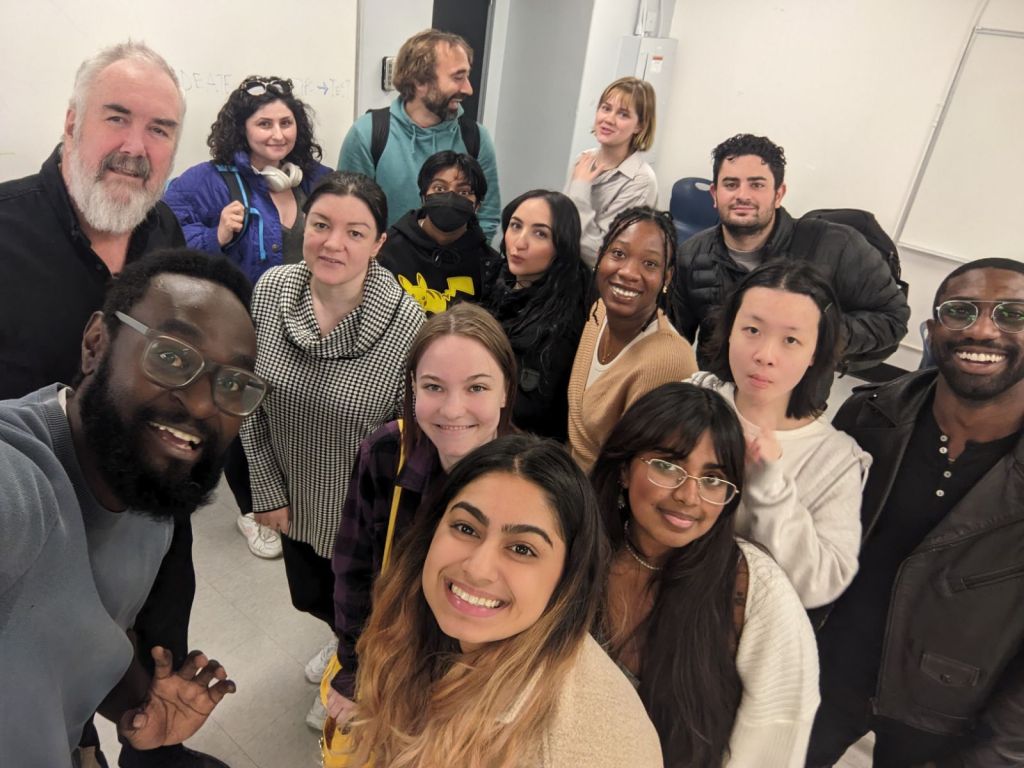 Kwasi Kyei workshop on photography and A.I. (eft to right) Back row:Tessa Boyce-Brown, Jesse Wilson, Laurence Turshyn, George Papadopolous Middle row: Ken Moffatt, Ana Trask, Petra Gocool, Athraa Slewa, Janessa Hester, Vin Tan, Tyrell Gough, Front Row: Kwasi Kyei, Bryn Mezger, Harleen Saguu, Dharshini Khannan, November 9, 2024
