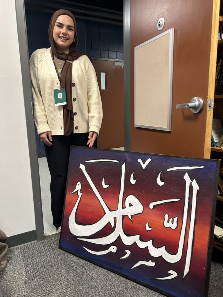 Gift from Nuha Dhooma oil painting, Salaam as part of her Salaam Project. Nuha Dhooma, Toronto Metropolitan University Eric Palin Hall March 14, 2025