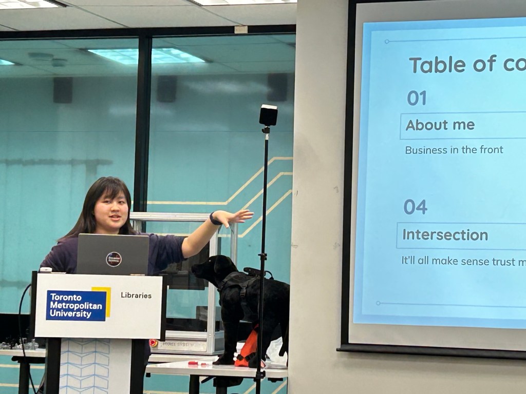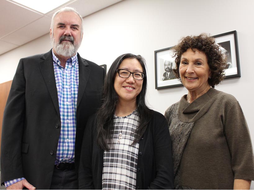 Ken Moffatt Jack Layton Chair, Taien Ng-Chan of Soyfish Media artist in residence, Melanie Panitch Director of Social Innovation, Sally Horsfall Eaton Builiding, Toronto Metropolitan University, Toronto, January 2018 Melanie Panitch, Samantha Wehbi, and Ken Moffatt created and curated the Faculty of Community Services Artist in Residence and Taien was the first in the position. She created a participatory poetry project entitled Trajectory of Things, a memory archive